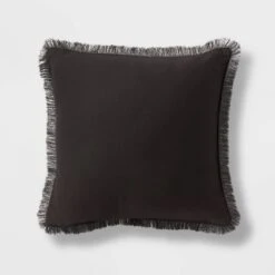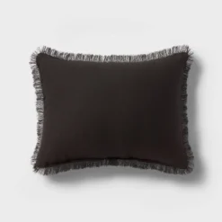 Create a space of pure relaxation and comfort with this 5-Piece Modern Stripe Comforter Set from Threshold™. This comforter bedding set includes a soft-filled comforter in off-white decorated with a modern pattern of beige stripes interspersed with broad black stripes, along with a pair of matching pillow shams to create a chic, cohesive look. Two decorative pillows, one square and one rectangle, both in charcoal gray with matching fringed trim complete the multi-piece bedding set.