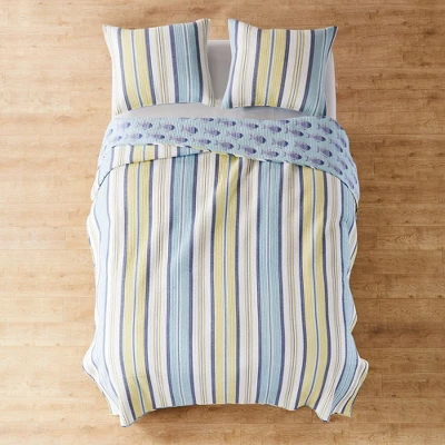 - COORDINATE YOUR ROOM DECOR: Create a wonderful bedroom space with our coordinated reversible matching bed set. The coastal stripe design brings classic ocean accents into your home and will match a variety of different looks and bedroom decor. You can also freshen your room with coordinating decorative pillows and euro shams from the Levtex Home collection.