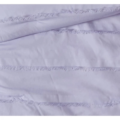 Bring a wink of color and texture into your bedroom with the Kristen bedding collection. The face features a soft solid color fabric in an eyelash fringe. The clipped jacquard stripes running horizontally across the bed is part of the original face fabric and provides a delightful surface texture with no seams for added durability. The face and back material are made of soft microfiber woven cloth. All items in the collection are easy care, machine washable to make your life easier. Face is a pleated 100% microfiber polyester with a 100% polyester reverse fabric and 100% polyester fiber filling. This item is machine washable, but please be sure to use appropriate sized machinery to avoid any excess wear on the items.