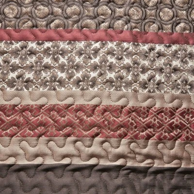 Add a touch of richness to your home décor with the Cambridge 5pc Reversible Jacquard Bedspread Set. Made from polyester jacquard, the bedspread and shams share leaf, striping, and medallion motifs that are accentuated by a solid chocolate brown border and reverse. Pops of red and ivory are also used throughout this bedding collection, adding a lavish feeling to your décor. Two decorative pillows feature pleating and embroidery details that coordinate with the top of the bed to bring the entire look together.