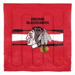 Show your team spirit with our Officially Licensed NHL Chicago Blackhawks Comforter & Sham Set from Northwest. Made with ultra soft Polyester microfiber outer fabric and Polyester Down Alternative fill for the greatest comfort while you dream of your team’s victory. The Comforter set print features team name, logo and helmet design Officially Licensed NHL Product Full/Queen set includes 1 Comforter and 2 Pillow Shams Box stitching design to avoid any shifting Luxury Polyester goose down-alternative comforter for year round use Machine wash gentle cycle with cold water Sun dry or low tumble dry 100-Percent Hypo-allergenic Dimensions: Full/Queen: Comforter 86″ x 86″, Shams 24″ x 30″