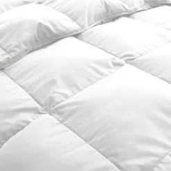 Using 100% soft organic cotton, the fabric is incredibly breathable and moisture-wicking, keeping you dry and cool during the whole night. Out organic cotton is ethically grown, ensuring and keeping its natural feeling. There may be some small dark spots through the cover, they are crushed cotton exocarp, which is natural and safe. The duvet is filled with 95% white feather fiber and 5% white goose down, with an extra step to remove solid feather quils, providing plushness and softness. Designed with sewn-through construction to ensure uniform distribution of the duvet filling, and avoid shifting or bunching. The comforter can be anchored to a duvet cover by its four convenient corner tabs.