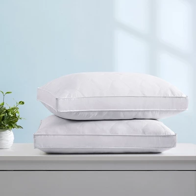 - Premium RDS 95% Goose Feather & 5% Goose Down Fill. Comfortable tailored medium/medium-firm support, gently support your every soothing sleep. 2 Pack first-class down feather gusset pillow, meet pure comfort and get maximum comfort sleeping