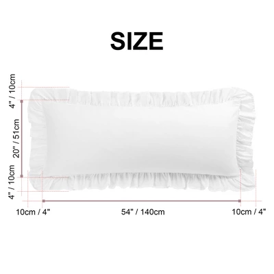 PiccoCasa Cotton Body Ruffled Pillowcases are made of 100% cotton fabric, decorated with a 4-inch flange edge on four sides, looking elegant and romantic. These simple and soft pillowcases can cover and preserve the pillows from being dirty and also can decorate your bedroom. The pillowcases are soft and smooth, colorfast, and easy to maintain. Machine washes in cold water, roller dry low, and do not bleach. Available Size: Body Size: 20″x48″/ 51x122cm (W*L); Body Size: 20″x54″/ 51x140cm (W*L). (Tip: The size of the choice does not include the extra 10cm/4-inch hem around the pillowcase.). Note: 1. Due to the light and screen setting difference, the actual color of the item may be slightly different from the pictures. 2. All dimensions are measured manually, thus please allow deviation (ranging from 1-3cm) due to different measuring methods and tools!
