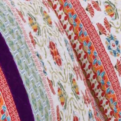 Add an irresistible layer of modern look to your bedroom with this elegant pillow sham. Rows of vivid medallions, stylized florals, and geometric prints create distinctive bohemian styling. The Thalia quilted sham features multi-fabric construction embellished with velvet bands. Reverses to a coordinating floral print on a Caribbean blue ground. This romantic style coordinates with a variety of colors and matches a wide range of color themes. Decorative cloth ties on reverse, center envelope style back. It is made of face 95% cotton with 5% polyester velvet embellishment; the back and fill is 100% cotton that feels soft to use. Prewashed and preshrunk. Machine washable. Measures: 20″ x 26″. Color: Multicolor.