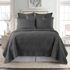 The Industrial Shop Solid Quilt Set keeps it simple, yet elegant. This set includes a solid color quilt and comes with matching pillow shams. The entire bedding set is 100% cotton that feels great against the skin, and the only embellishment on this minimalist bedding set is the x-stitching pattern itself, which creates subtle, delicate texture. You will love getting into bed every night with this bedding set!