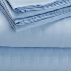 Embossed 1800 Series Wrinkle Resistant Soft Stripe Bed Sheet Set Ocean Blue By Plazatex